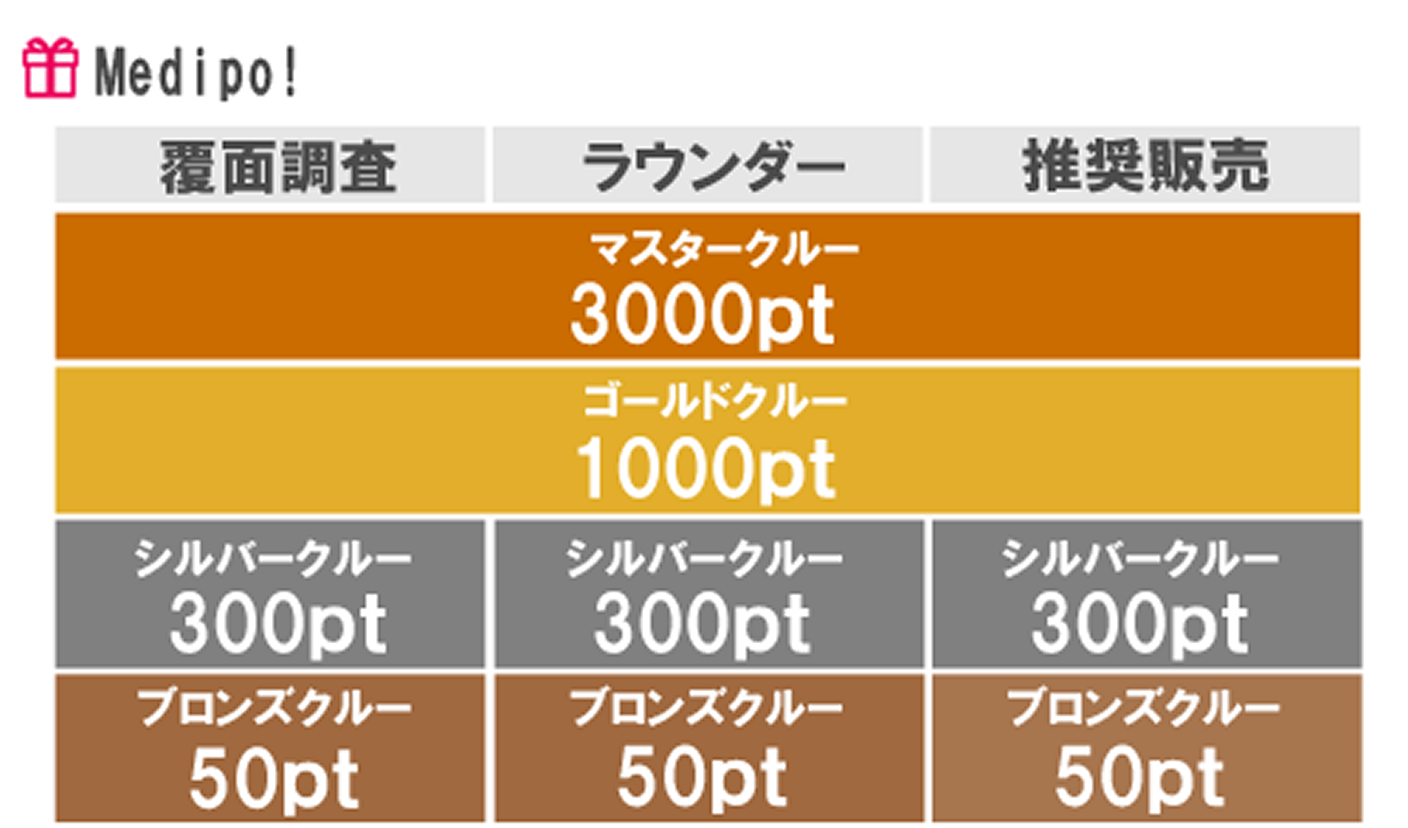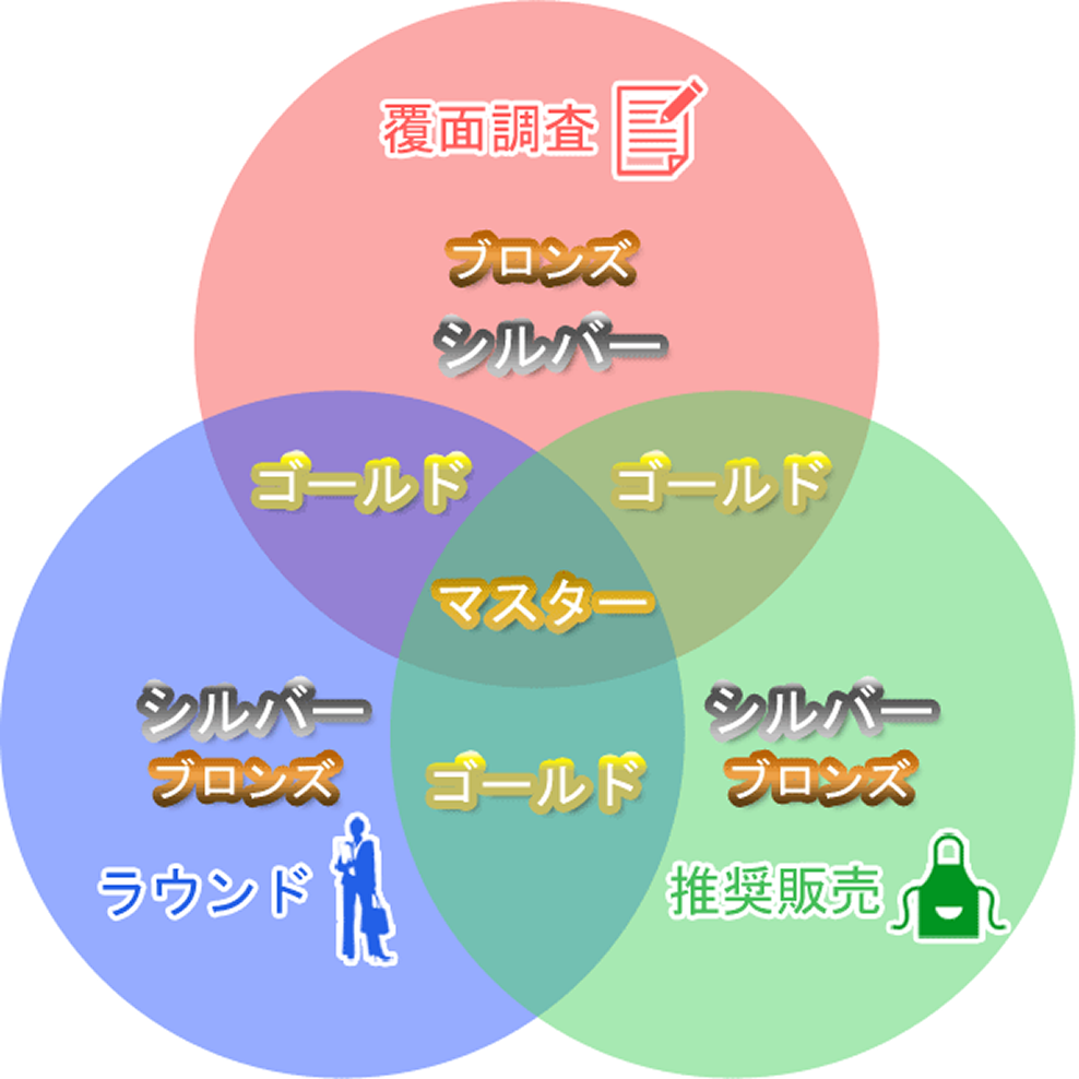 ①ブロンズ・シルバー・ゴールド・マスターの合計4つのランクを設定しております。